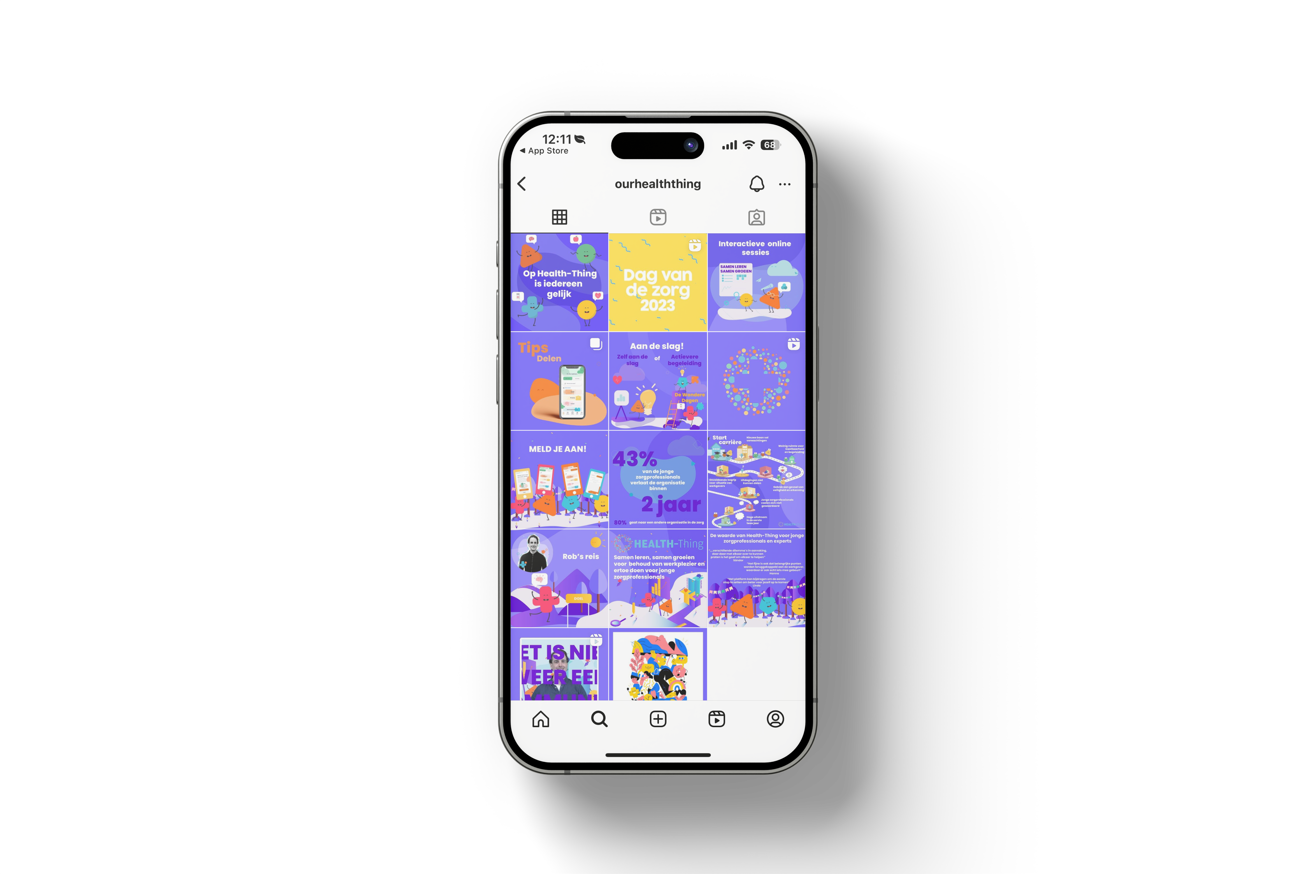 Tijdens mijn stage bij Health-Thing was ik verantwoordelijk voor het doorontwikkelen van De Wondere Dagen: een reeks wekelijkse opdrachten gebaseerd op de behoeften van de doelgroep. De volledige vormgeving, het ontwikkelen en iteratief verbeteren van opdrachten op basis van gebruikersinzichten, het valideren met de doelgroep en de introductie via social media.